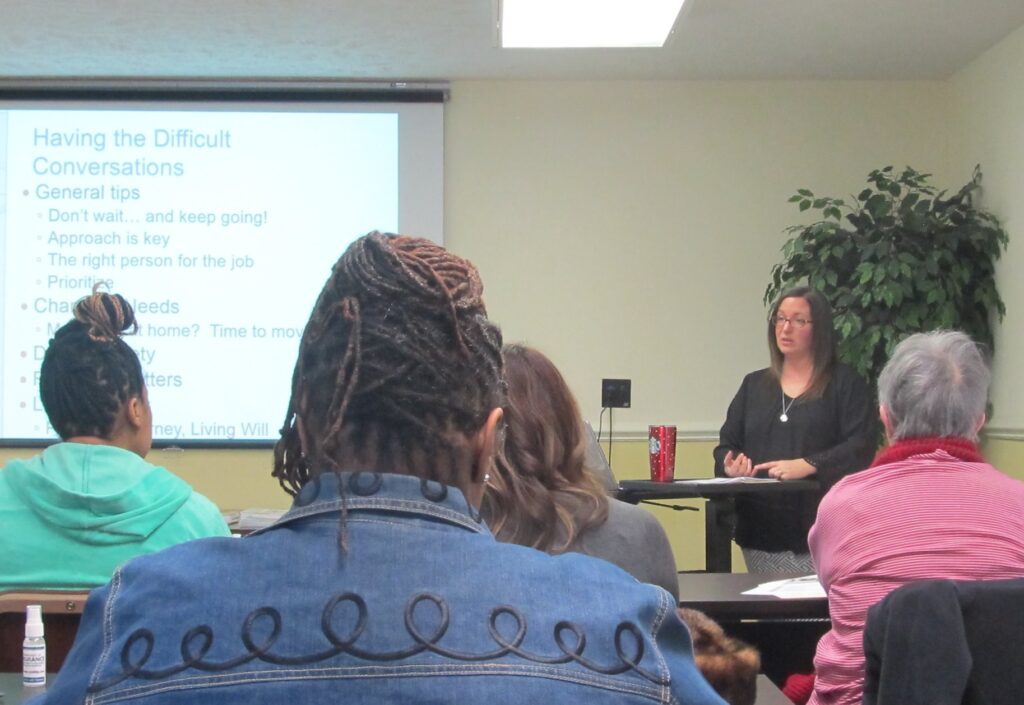 Additionally, we offer the Managing Stress Seminar, a one-time session based on the Powerful Tools for Caregivers program, aimed at understanding, identifying, and taking action to reduce caregiving stress